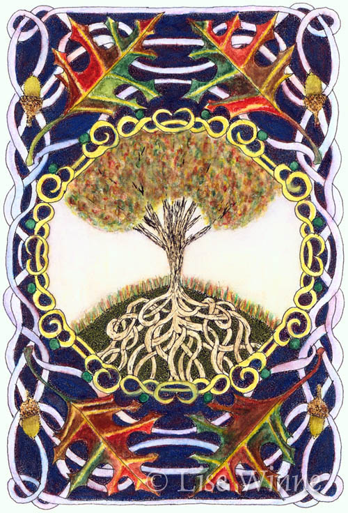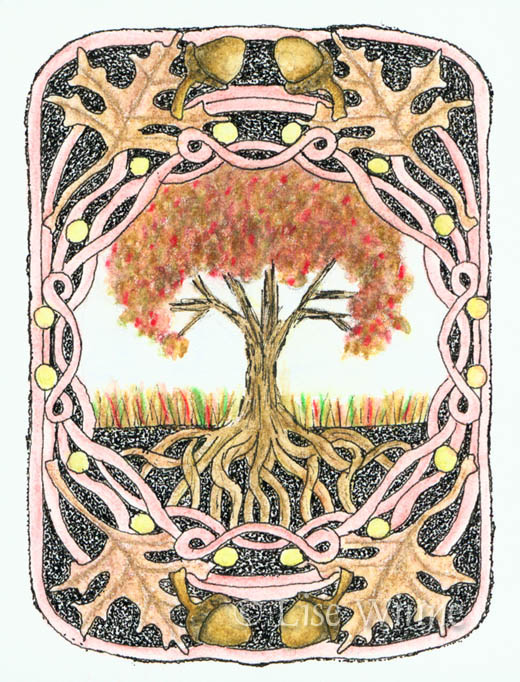 ![]() OAK TREE IN AUTUMN II oswoa, watercolor, ink, colored pencil 2010 H: 6" W: 4" |