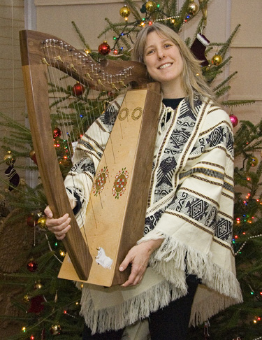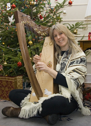 One big surprise I can tell you about, came for me over the holidays. My sweetie gave me a Celtic lap harp! I saw a big package. I thought that maybe it might be a couple of canvases to paint on or maybe a big easel. But, was I surprised (it’s been my dream to play one since the early nineties!). Jim contacted George Leverett who makes harps for The Harper and the Minstrel (our friends, Jay and Abby) and he made a beautiful one out of walnut and maple. George's wife, Anwyn, painted some Celtic and Renaissance designs on the front. Ever since I unwrapped it, I’ve been playing it. Harp has such a pleasant sound that it is an easy instrument to practice for hours on end. Our violinist, Frank Orsini, plays a little bit of harp and gave me some very useful instructions to get started. Even so, I see that it's a difficult instrument and will take years to perfect, so I have even more admiration for Jay Michaels, Lisa Lynne, Kim Robertson, Martha Gallagher and other harpers I have known throughout the years!