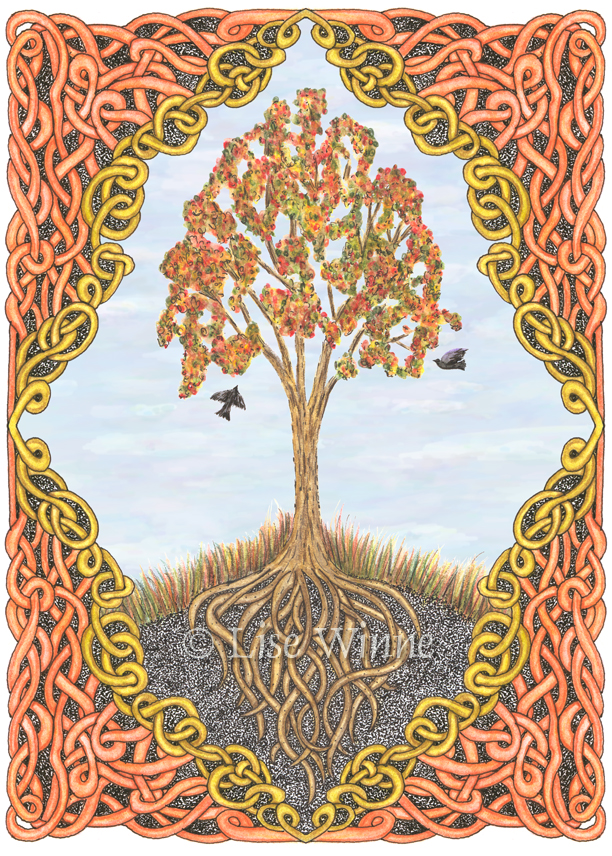 ![]() AUTUMN TREE WITH KNOTTED ROOTS AND KNOTTED BORDER |