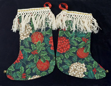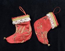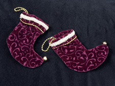 MINI HOLIDAY STOCKINGS II velvet stockings, braided lace, beads, bells, unlined 4" x 4"
