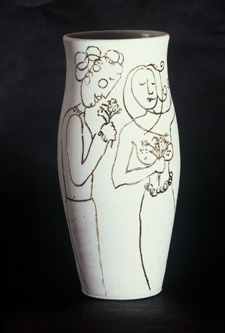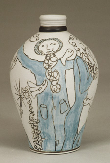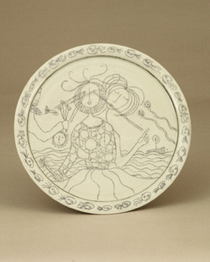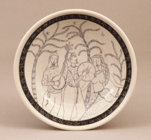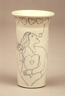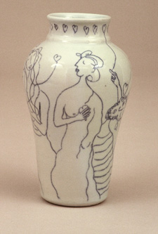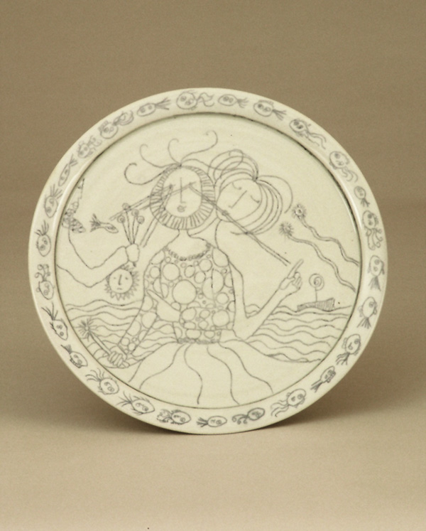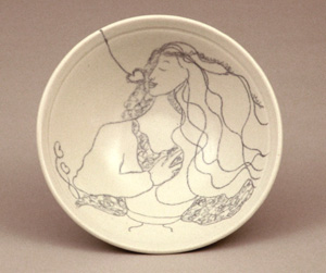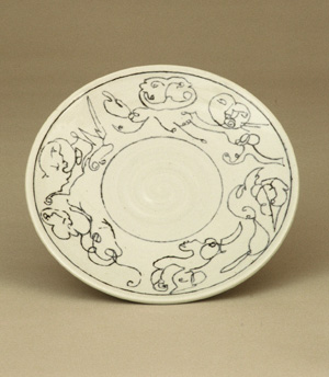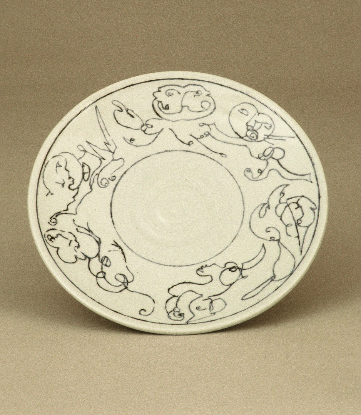 following pieces are some representations of how I draw on one-of-a-kind ceramic